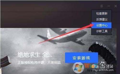 1、騰訊手游助手右上角打開“設置中心”菜單項。