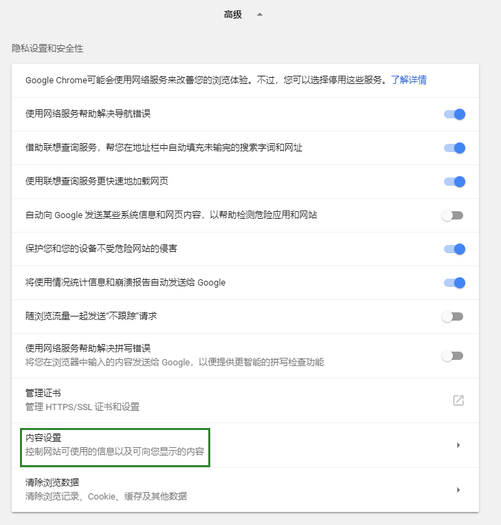 在展開的頁(yè)面中單擊內(nèi)容設(shè)置。