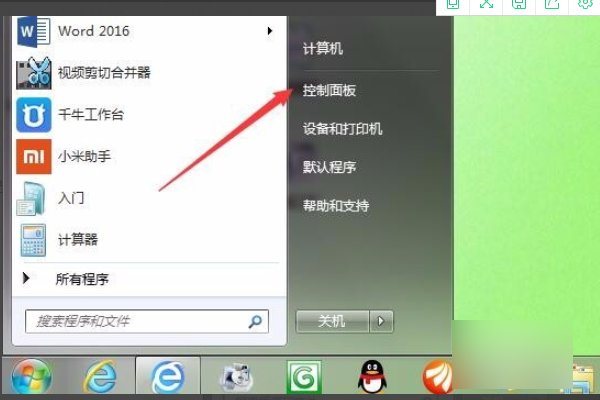 首先我們打開電腦桌面,點(diǎn)擊左下角的開始按鈕,在彈出菜單中選擇“控制面板”菜單項(xiàng)。