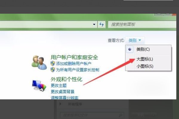 在打開的控制面板窗口,點(diǎn)擊右上角查看方式選擇“大圖標(biāo)”菜單項(xiàng)。