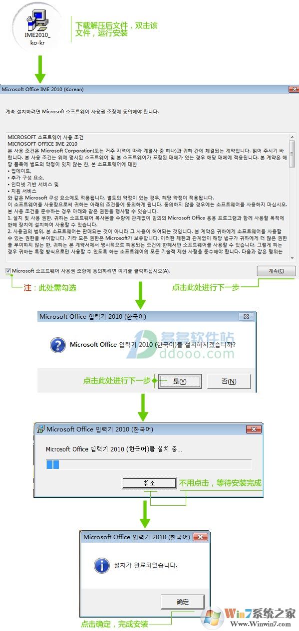 c、然后在打開的小窗口中,選擇朝鮮語(韓國),下方鍵盤勾選安裝好的“Microsoft IME 2010”,點擊確定;