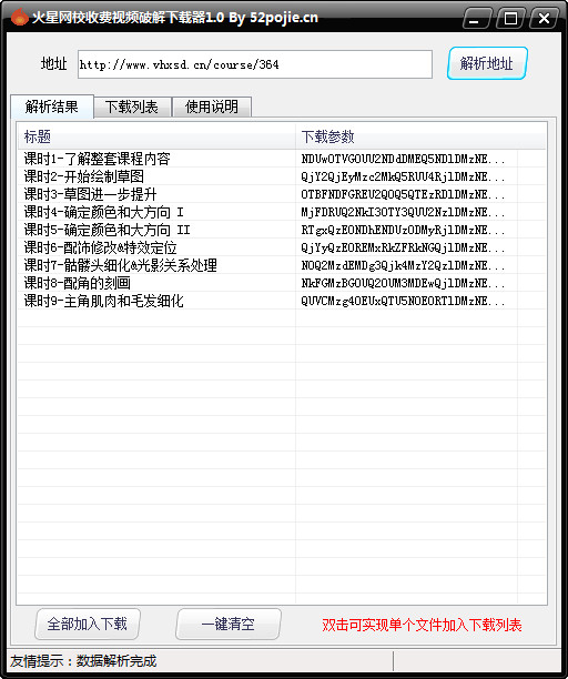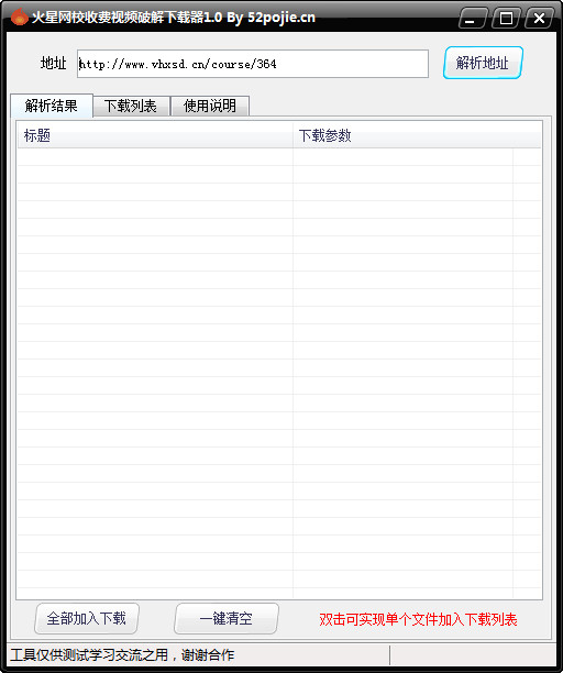 點擊解析地址獲取視頻,點擊解析結果即可下載