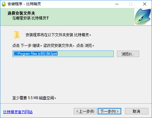 2、進入安裝位置界面,選擇比特精靈安裝的位置,然后點擊“下一步”。