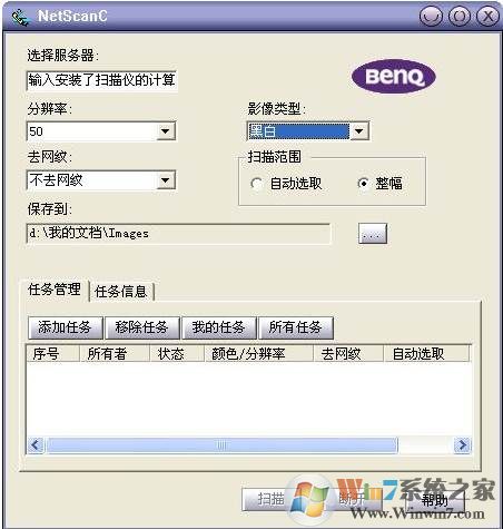 在客戶端只要安裝NetScan的掃描儀共享軟件客戶端程序,安裝好后點(diǎn)擊菜單“開始→程序→BenQ NetScan→使用掃描儀”,然后在打開的界面上來進(jìn)行設(shè)置: