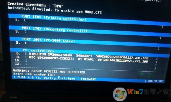 1、運行MHDD后,在序號中找到你的硬盤,輸入序號回車,如果找不到硬盤還是要回DOS看看硬盤模式是否設(shè)為IDE了;