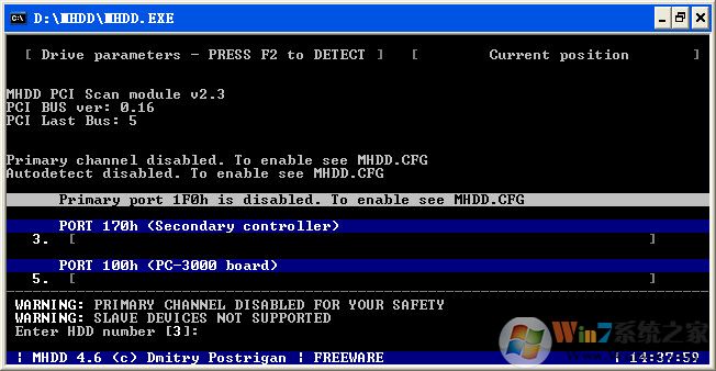 2、MHDD最好在純DOS 6.22/7.10環(huán)境下運行;