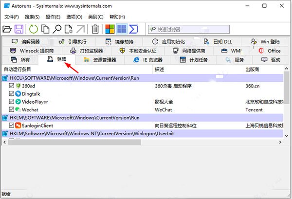 autoruns是一款開機啟動項管理軟件,界面簡潔清爽,占用空間極小。能高效管理各類啟動項目,提供關于啟動監(jiān)視程序的完整資訊,例如哪些程序被配置為自動開啟,對應的注冊表位置、名稱、描述等細節(jié),并允許個人有選擇地停用或移除這些項目。還能發(fā)現(xiàn)一些難以察覺的病毒木馬及惡意插件,會自動加載并列出所有啟動項的詳細信息,從而提升計算機的安全性。趕快下載使用吧!
