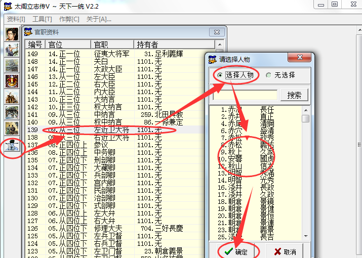 剩下的包括游戲人物勢(shì)力、游戲人事調(diào)動(dòng)、游戲官職等修改,如圖所示點(diǎn)擊技能調(diào)整游戲官職。