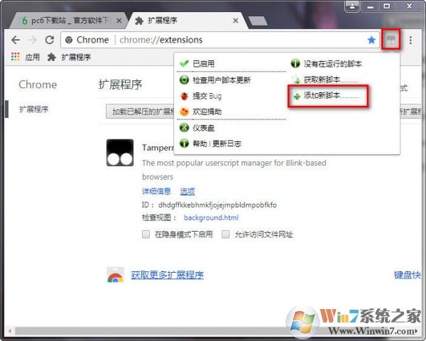 2、點(diǎn)擊打開(kāi)Tampermonkey插件添加新腳本功能。