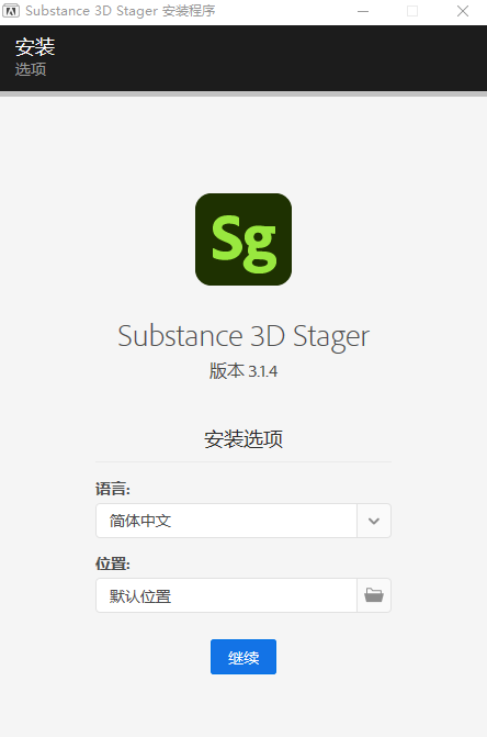 2、選擇語言和軟件安裝位置,默認(rèn)無需更改,點(diǎn)擊【繼續(xù)】