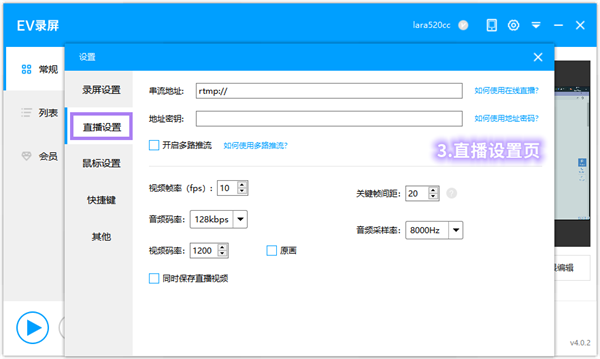 1、rtmp網(wǎng)絡(luò)串流地址:請自行前往直播平臺獲取,如果在斗魚TV直播就在斗魚平臺獲取,具體http://www.ieway.cn/help/desc-evcapture-pc-108.html。每次直播完,都須要重新獲取更新串流地址,每次推流地址都不一樣。