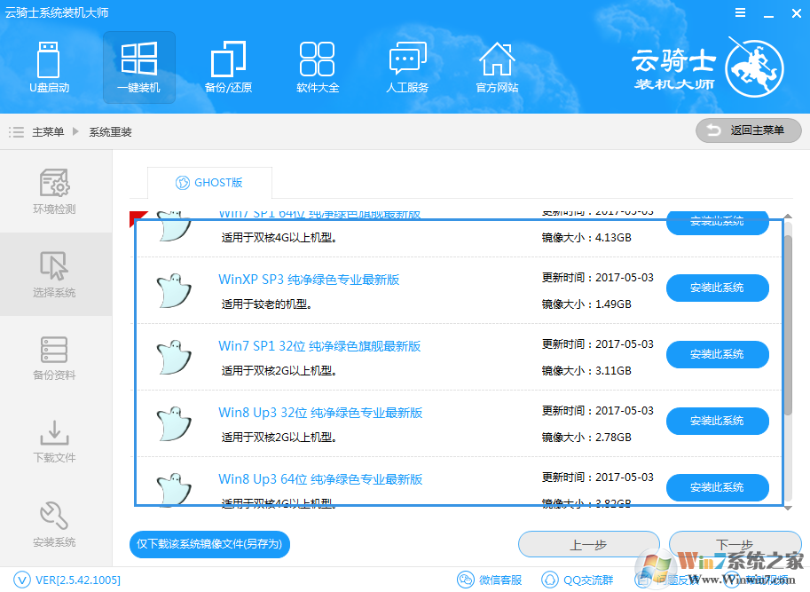 進(jìn)入"系統(tǒng)選擇",云騎士支持XP,Win7, Win8,Win10系統(tǒng)的安卓,所以,用戶根據(jù)需求選擇要安裝的系統(tǒng)類型;