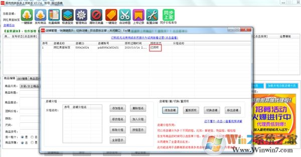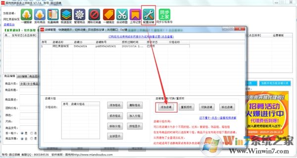 2)登錄成功,點(diǎn)擊頂部的配置店鋪,彈出授權(quán)窗口,點(diǎn)擊添加店鋪。