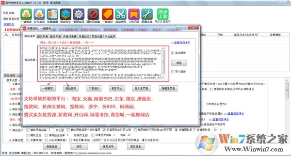 1、點(diǎn)擊主界面中頂部的一鍵搬家,彈出采集、搬家窗口-商品鏈接,支持粘貼和批量導(dǎo)入,這里我們勾選追加鏈接。作用:粘貼多個(gè)商品鏈接時(shí)不會覆蓋自謙的鏈接,并且會幫你自動分行。