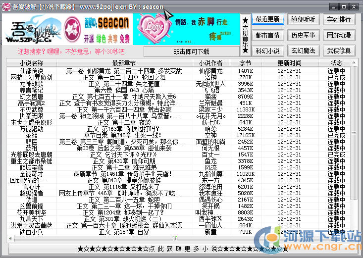 TXT免費小說下載器是小編從某論壇上找到的一款綠色無毒安全無廣告的一款免費的小說下載工具。里面有最近更新、都市言情、歷史軍事、網(wǎng)友動漫、科幻小說等專題,讓你快速找到你所喜歡的小說并將其下載到本地!
