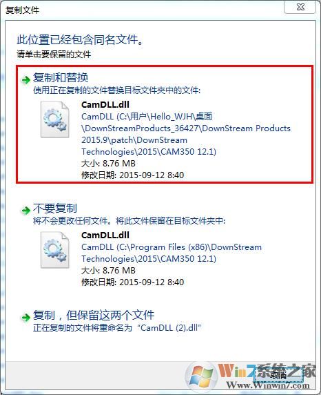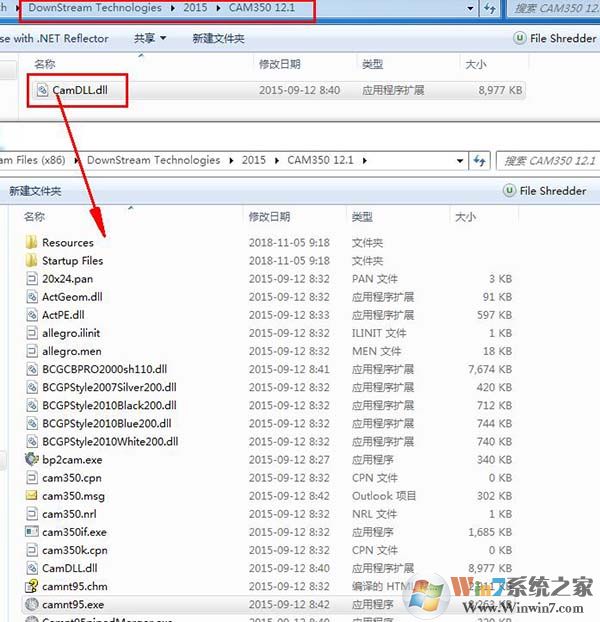 11、打開軟件包,打開patch\DownStream Technologies\2015\CAM350 12.1目錄,將其中的破解補丁“CamDLL.dll”復(fù)制到軟件安裝目錄下,可以右鍵桌面圖標選擇打開文件位置進入安裝目錄。