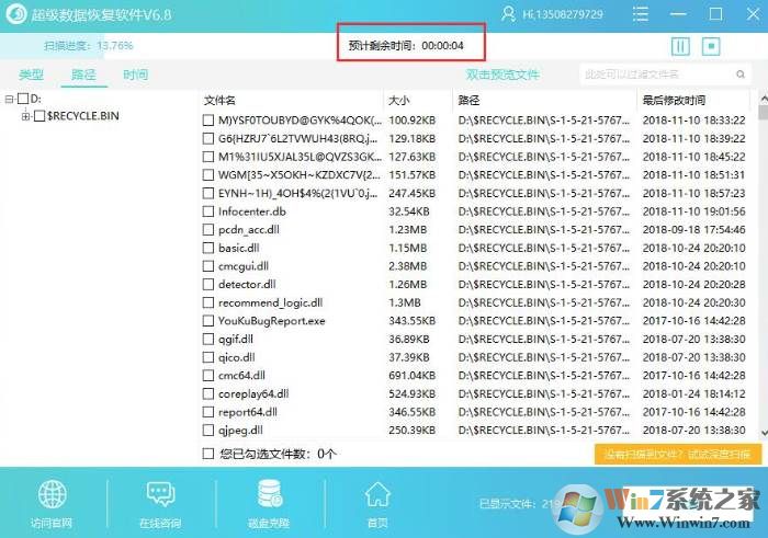 3、針對誤清空回收站的數(shù)據(jù)恢復的數(shù)據(jù)文件的掃描時間,整個回收站只要了5秒!!!