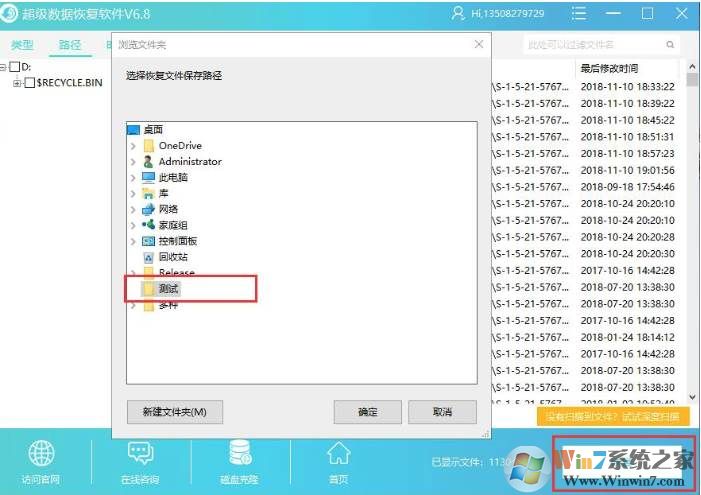 5、當然,恢復文件之前我們需要先注冊數(shù)據(jù)恢復軟件,才可以進行恢復。軟件注冊完成之后,我們針對這個回收站丟失的文件進行數(shù)據(jù)恢復測試,選中需要保存文件的地方即可。