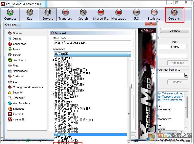 點擊右上角的Options 然后在language這選擇中文就可以了。