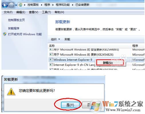 2、然后找到Windows internet Explorer 9右鍵點(diǎn)擊卸載即可。