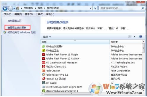 1、要卸載IE9,只需要在控制面板—程序,點(diǎn)擊查看已經(jīng)安裝的更新
