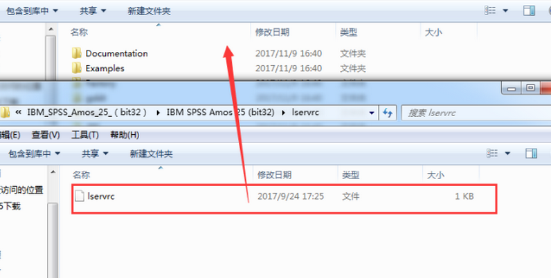 9、將Amos 25.0破解文件“lservrc”復(fù)制到安裝目錄下覆蓋源文件,默認(rèn)路徑為C:\Program Files (x86)\IBM\SPSS\Amos\25,即可完成破解。