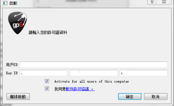 3、完成安裝,會(huì)彈出許可證資料輸入窗口,窗口左下角有“離線啟動(dòng)”按鈕,該按鈕是灰色不可選狀態(tài)。在輸入框中任意輸入數(shù)字,只到該按鈕可用為止