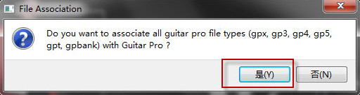3、行Guitar Pro 6. 打開程序時(shí)會(huì)詢問是不是關(guān)聯(lián)所有Gtp文件(Do you want to associate all guitar pro file types (gpx, gp3, gp4, gp5,gpt, gpbank) with Guitar Pro ?),點(diǎn)擊是
