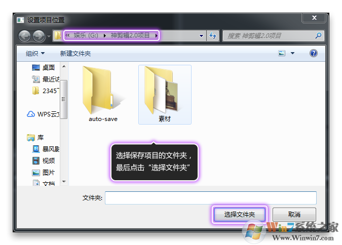 ③、選擇保存項目的文件夾后,點擊“選擇文件夾”,如圖3所示。