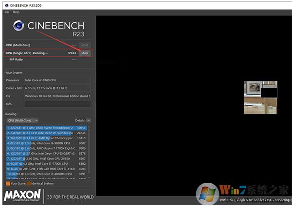 6、在這邊你可以看到各種型號的cpu跑分排行,以及你cpu的跑分情況。