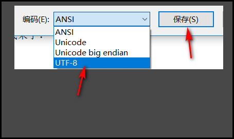 3、完成文本編輯,確定文本編碼為UTF8,保存,如下圖所示。