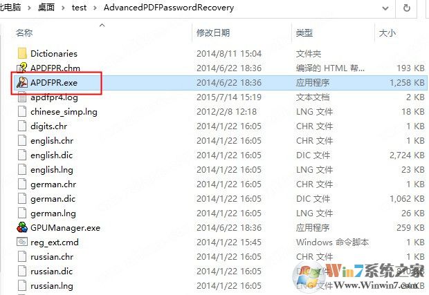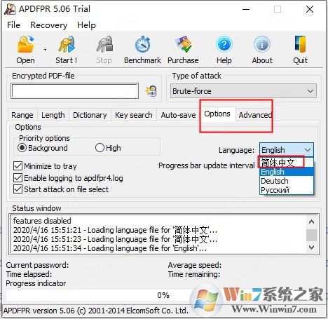 1、下載后先解壓,然后行“APDFPR.exe”文件打開advanced pdf password recovery;