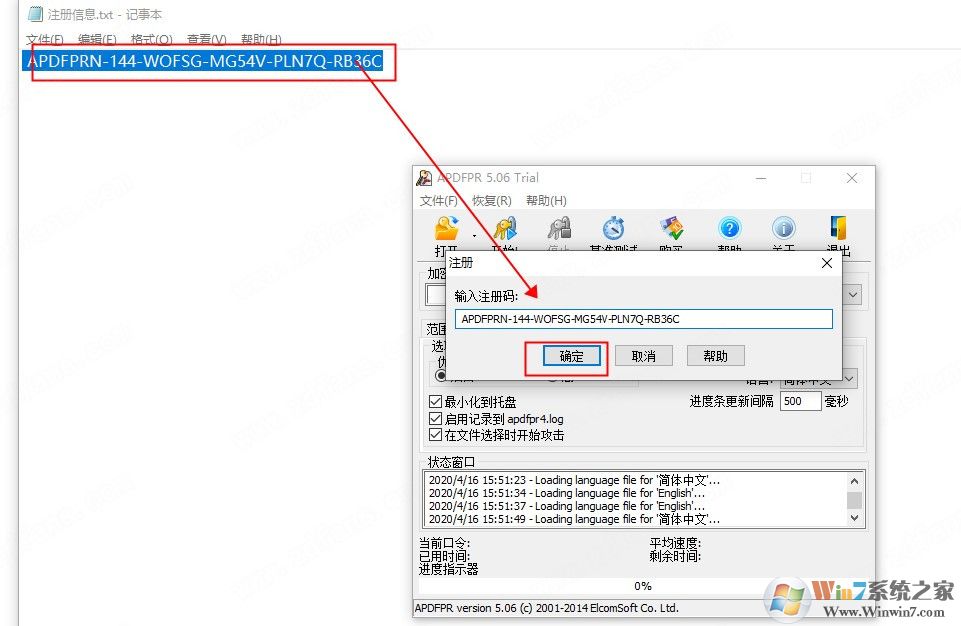 4、打開安裝目錄里的“注冊信息”文本,把里面的注冊碼復(fù)制進去,點擊“OK”;