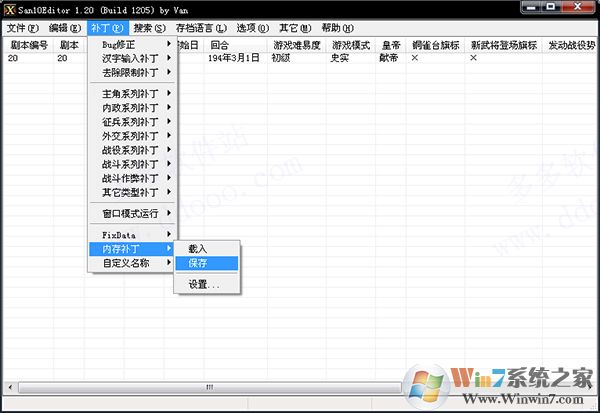 1、點(diǎn)選補(bǔ)丁-內(nèi)存補(bǔ)丁-保存【如圖】(第一次設(shè)置之后。若之前無(wú)任何補(bǔ)丁操作使用這項(xiàng)是沒用的。換句話說(shuō),這項(xiàng)是記錄你保存之前所打的補(bǔ)?。?br />