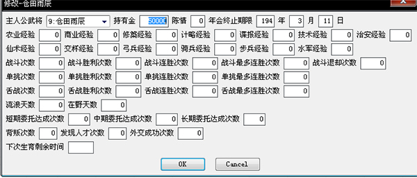與修改器直接修改相比,雖然要麻煩不少,但是可以避免邏輯錯(cuò)誤,同時(shí)可以更新寶物、人物關(guān)系等諸多其它信息,實(shí)現(xiàn)更為復(fù)雜的死亡(比如武將打仗或執(zhí)行任務(wù)時(shí)也可以“弄死他”),所以建議各位不妨一試。