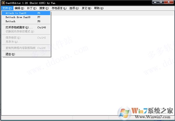 進(jìn)入游戲之后,執(zhí)行File菜單的Attach to San10(修改器什么時(shí)候打開沒有關(guān)系),此時(shí)各項(xiàng)功能就可以正常使用
