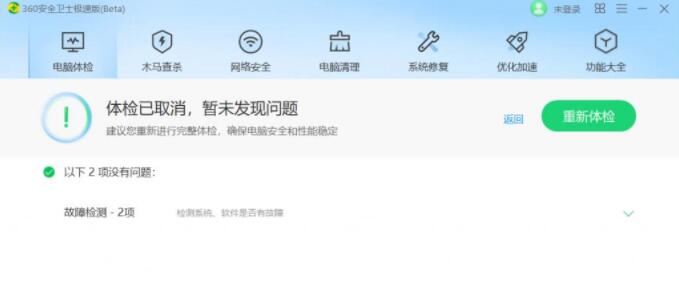 3、功能沒有精簡(jiǎn):點(diǎn)擊任意一項(xiàng),會(huì)跳轉(zhuǎn)到第二界面,可隨意切換功能,與原版 360 安全衛(wèi)士一致。