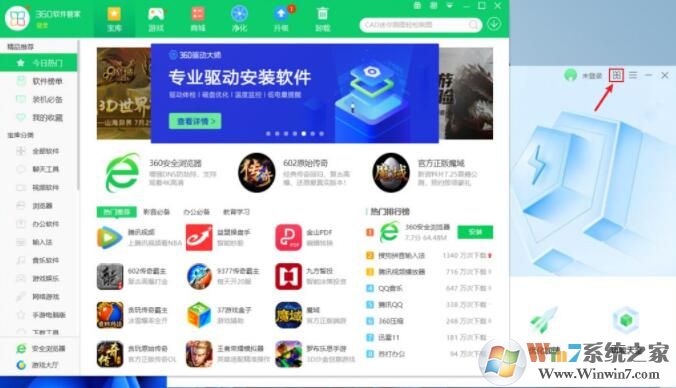 5、不過,點(diǎn)擊 360 安全衛(wèi)士極速版右上角的按鈕(已紅框標(biāo)記),會(huì)打開 360 軟件管家,在這個(gè)界面會(huì)出現(xiàn)幾秒鐘的軟件內(nèi)彈窗,但也只出現(xiàn)了一次,可能沒有凈化完全。