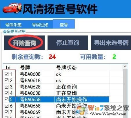 12、隨后發(fā)票勾選要查尋的號(hào)牌,點(diǎn)擊剛開始查尋只能。