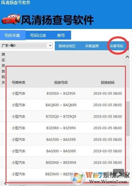 5、第四步點(diǎn)擊查尋之后正下方會(huì)顯示信息號(hào)碼段,顯示信息后點(diǎn)擊收集號(hào)碼段。