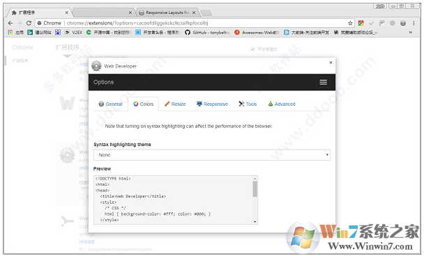 6、若是想要對(duì)該插件的設(shè)置進(jìn)行一些調(diào)整,可以右鍵點(diǎn)擊Web Developer插件圖標(biāo)并選擇選項(xiàng)一欄進(jìn)入設(shè)置頁(yè)面,在該頁(yè)面中使用者可以對(duì)它的顏色樣式、尺寸、鏈接等功能進(jìn)行設(shè)置。