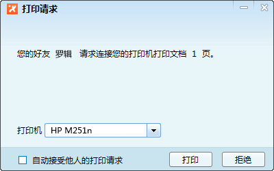 對(duì)方在收到您打印請(qǐng)求后,可以選擇同意或拒絕打印,如果對(duì)方設(shè)置為自動(dòng)接收打印請(qǐng)求,則無(wú)需經(jīng)過(guò)同意,自動(dòng)打印。
