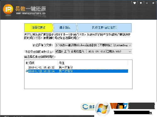接下來(lái),軟件會(huì)提示用戶(hù)選擇還原的時(shí)間點(diǎn),您每次備份時(shí)輸入的備注也會(huì)在這里顯示出來(lái)