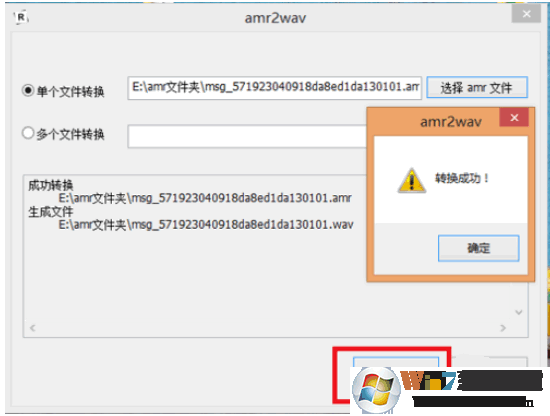 2、然后直接點(diǎn)擊開(kāi)始轉(zhuǎn)換,一會(huì)就轉(zhuǎn)換好了,直接去amr文件所在的文件夾查看轉(zhuǎn)換后的音頻文件,雙擊打開(kāi)聽(tīng)一聽(tīng)是不是能播放了。