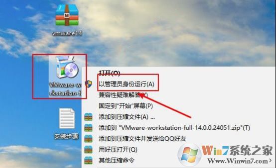 1、下載之后鼠標右擊“VMware-workstation-full-14.0.0”,選擇以管理員的身份運行。