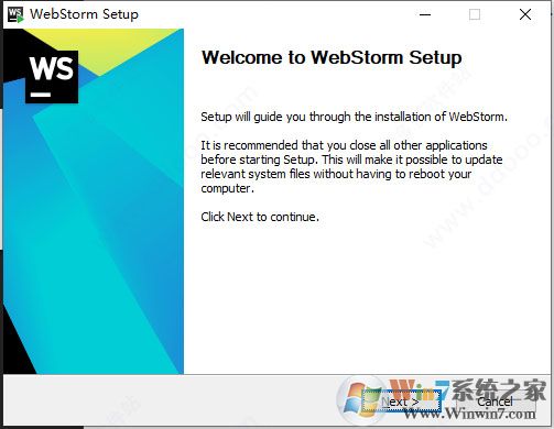 2、雙擊“WebStorm-211.4961.31.exe”開始安裝軟件,點擊next;