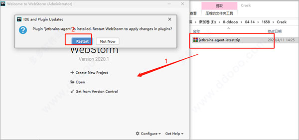 8、接著再將本站提供的“jetbrains-agent-latest.zip”文件拖放到 IDE 窗口,并點擊restart;