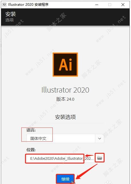 4、位置必須手動選擇,點擊小文件夾,我選擇的位置是E盤內(nèi),Adobe2020文件夾內(nèi)的Adobe Illustrator 2020文件夾;