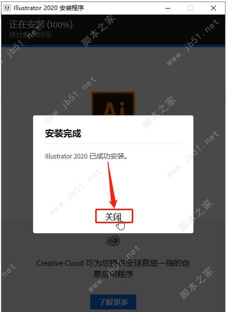 7、Adobe Illustrator 2020已成功安裝,點擊關(guān)閉;