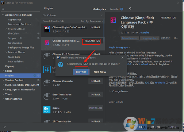 3、下載完成后點(diǎn)擊“restart ide”——“restart”